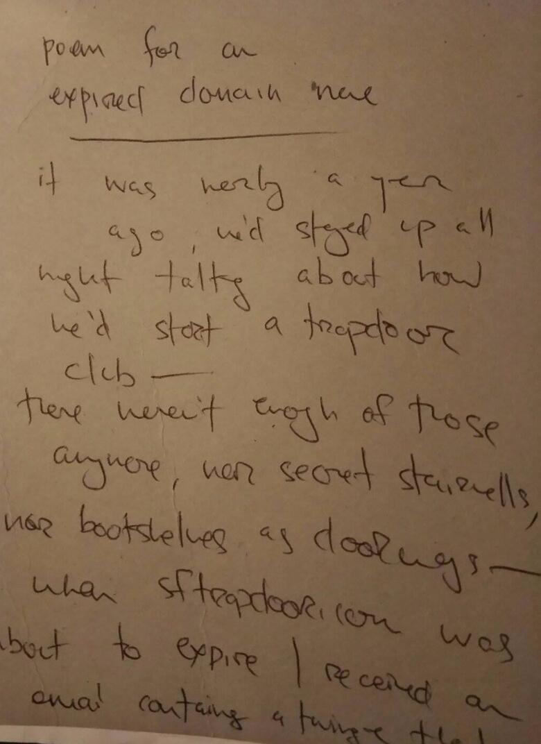 Obit: We stayed up all night talking about how we'd start a trapdoor club.